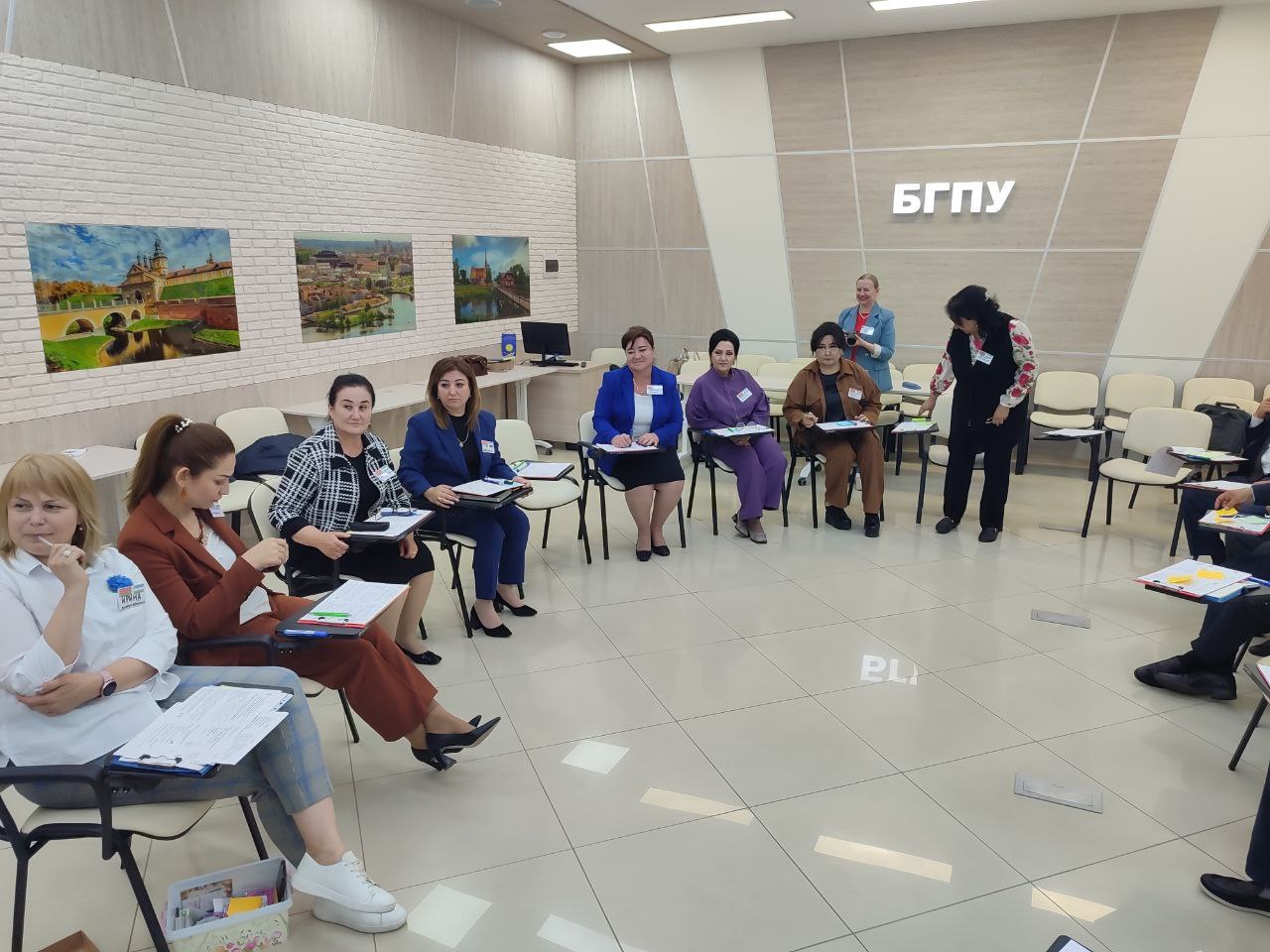 Delegatsiya vakillari orasida Maktabgacha ta’lim metodikasi kafedrasi mudiri Lola Narimbayeva Belarus davlat pedagogika universitetida malaka oshirish bilan bir qatorda "Kichik yoshdagi bolalar bugungi mehnat bozorida talab qilinadigan ko‘nikmalarni egallashi uchun" ta’lim dasturlarini yaratish yuzasidan fikr almashmoqda.