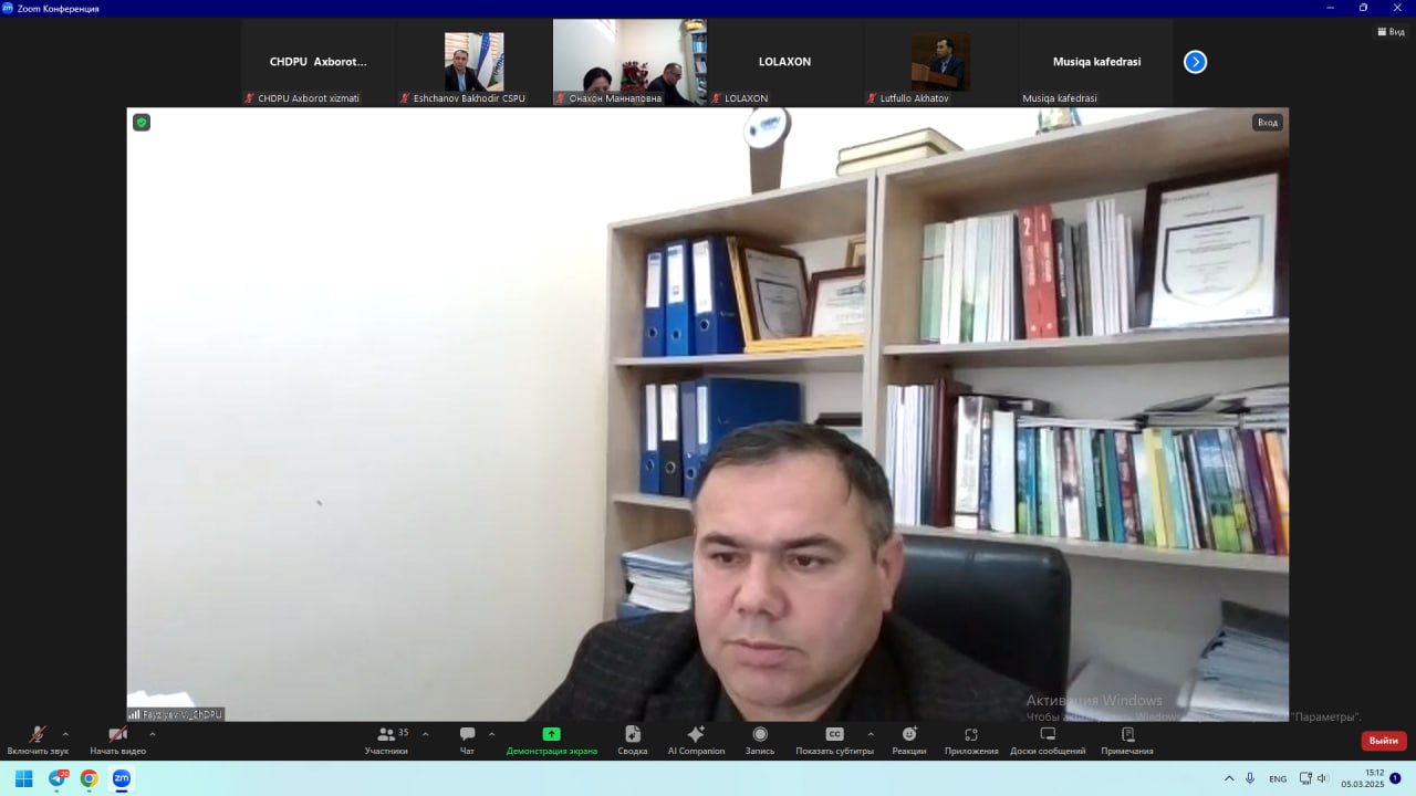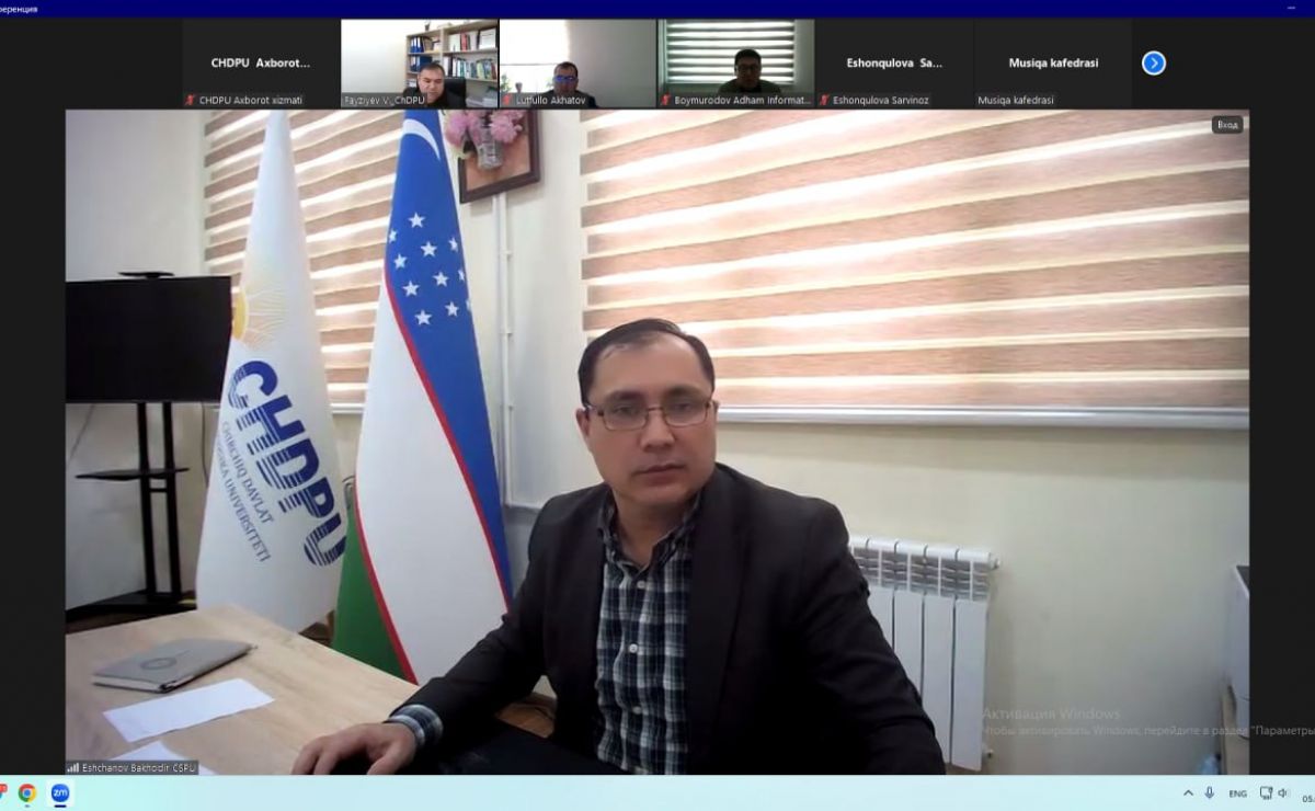 Ilmiy ishlar va innovatsiyalar bo‘yicha prorektori Baxodir Eshchanov rahbarligida “Ilmiy-tadqiqot loyihalari tanlovida ishtirok etishning dolzarb vazifalari, imkoniyatlar va istiqbolli yo‘nalishlar” mavzusida videomuloqot bo‘lib o‘tdi.