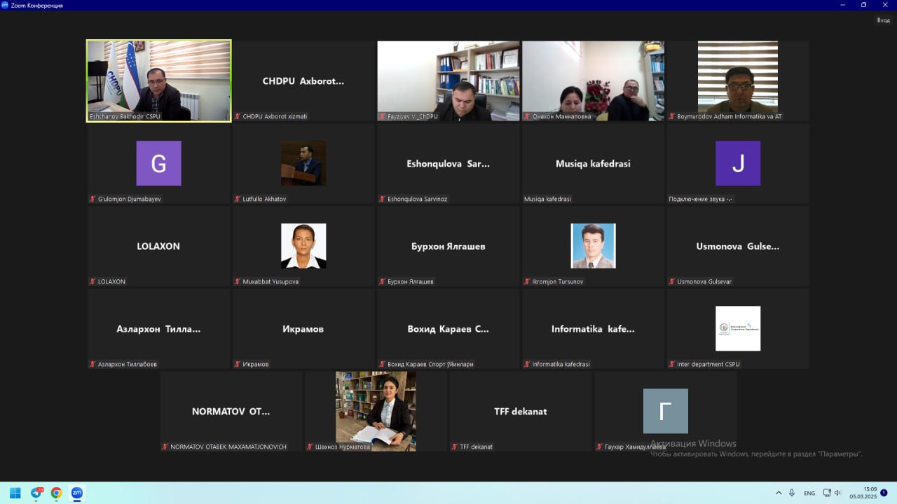 Onlayn tarzda o‘tkazilgan ushbu muloqotda Universitet kafedra mudirlari, ilmiy loyiha rahbar va ishtirokchilari, doktorantlar va mustaqil izlanuvchilar ishtirok etdilar.
